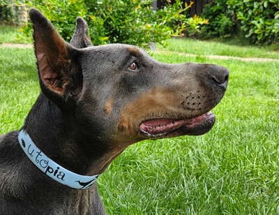 La dobermann : Utopia, une boule d'amour, ok tout mais ayant très peur des autres chiens. Début de vie merdique, elle est devenue la princesse des lieux. (Je veut sortir, je pleure, je veut rentrer, je pleure, je veut manger, je pleure breeeeeef......)