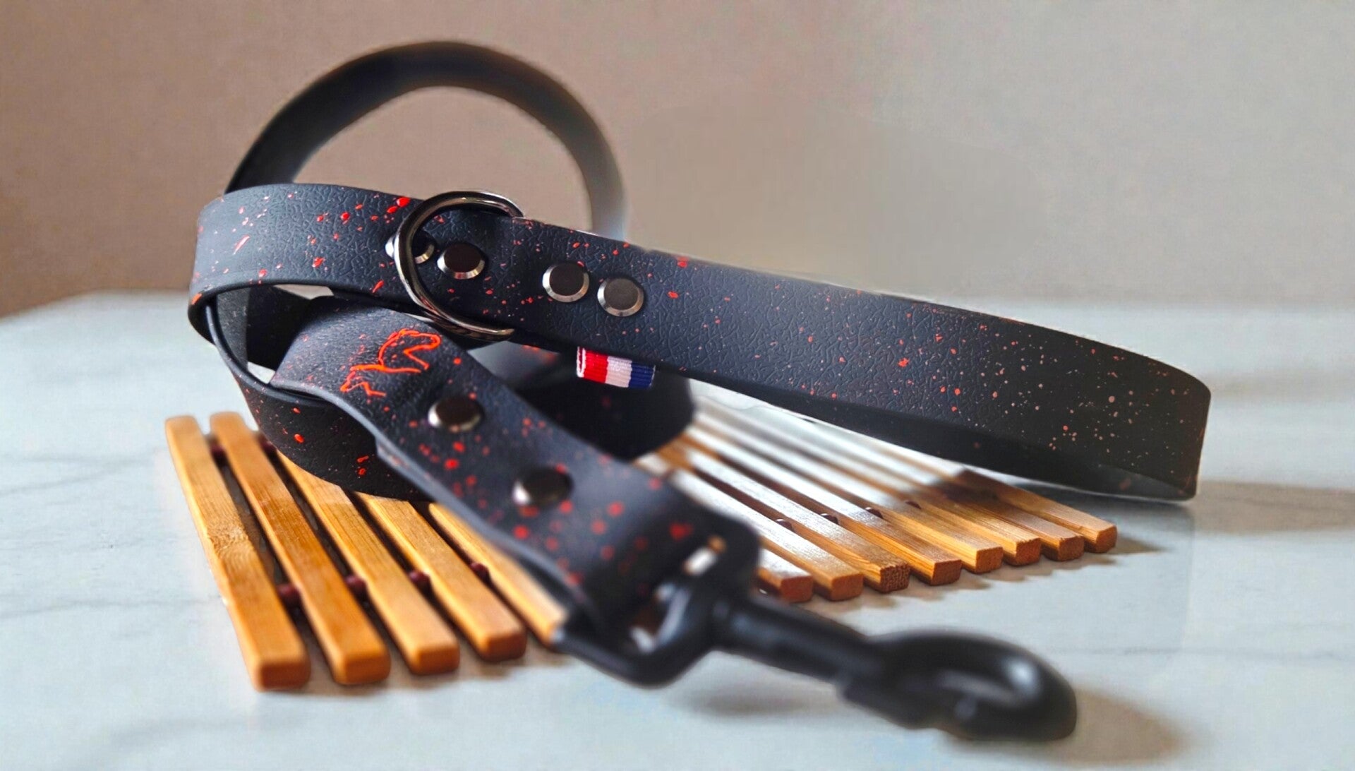 Fabriqué avec soin dans notre atelier, ce collier allie style, durabilité et confort, pour accompagner votre chien en toute sécurité et avec élégance.